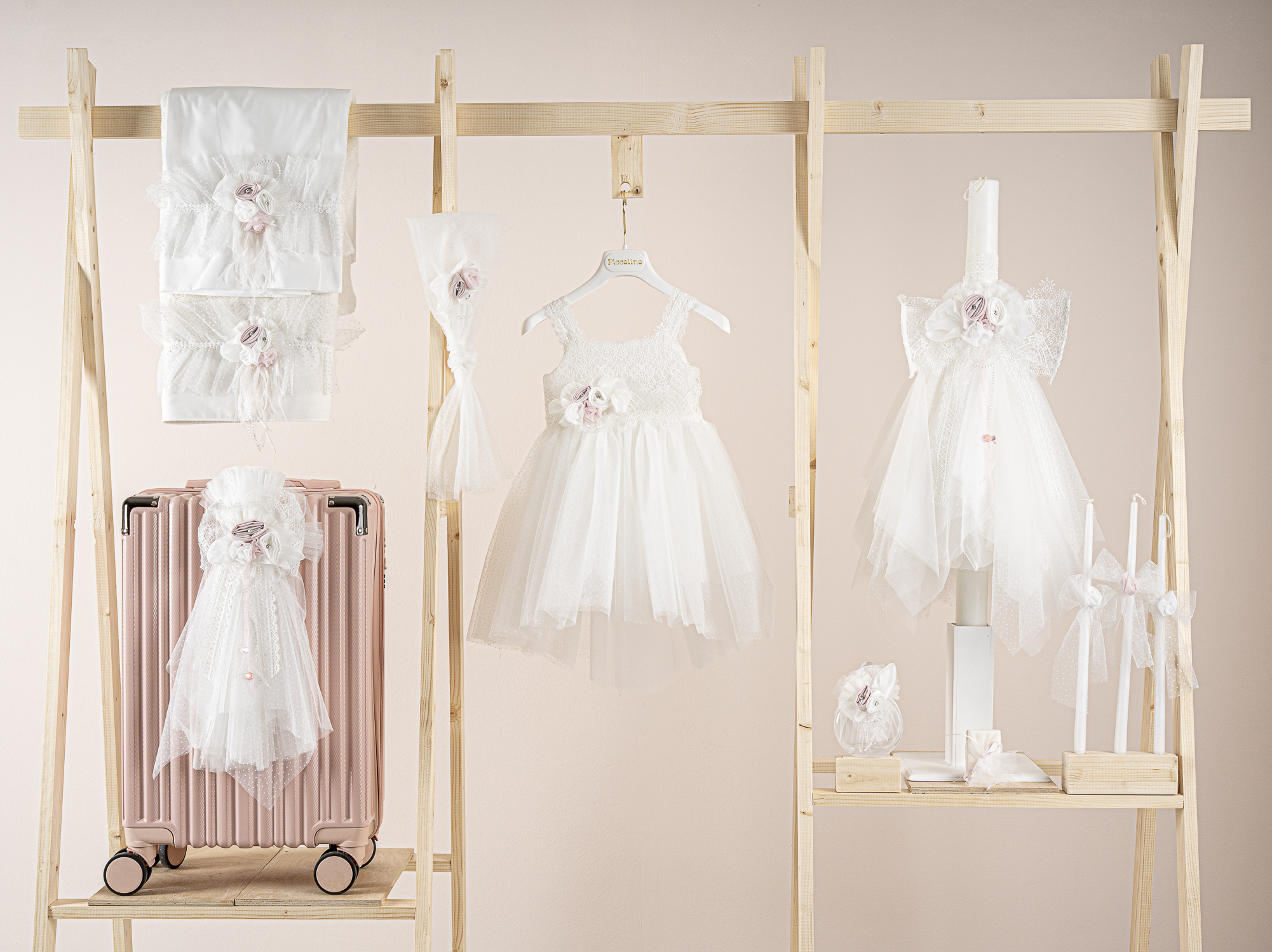 Πακέτο βάπτισης για κορίτσι Piccolino Michele ivory με βαλίτσα pink